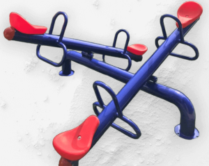 Balancín metálico doble 100% galvanizado, destinado a la recreación infantil, son fabricados con polietileno de media densidad, lo que lo hace especialmente resistente a impactos y a las inclemencias del tiempo, contiene aditivos UV capaces de evitar la decoloración ante los rayos del sol, antiestáticos y no tóxicos.