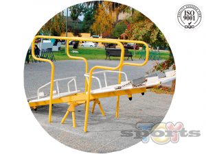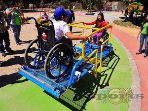 Balancin inclusivo, diseñado para espacios públicos, de gran resistencia y durabilidad, tiene capacidad para dos sillas de ruedas,