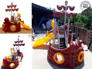 Incluye: 1 tobogán doble,  acceso espiral, escalera de acceso, 2 paneles proa, un techo vela.