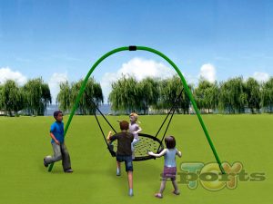 Columpio nido curvo Integrador, diseñado para espacios públicos, de gran resistencia y durabilidad, diseñado para que niños puedan disfrutar sentado, acostado o de pie.