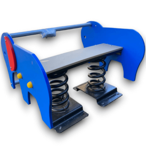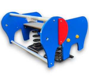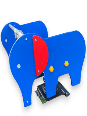 Juego de resortes doble con forma de elefante, destinado a la recreación infantil, fabricado con polietileno de alta calidad, lo que lo hace especialmente resistente a impactos y a las inclemencias del tiempo, contiene aditivos UV capaces de evitar la decoloración ante los rayos del sol, antiestáticos y no tóxicos.