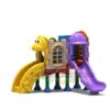 Juego Modular de exterior de alto trafico, diseño multifuncional, constituido por una plataforma cuya estructura y uniones metálicas son de acero galvanizado, es muy firme y seguro lo que permite que varios niños jueguen de manera simultánea, sellado al horno con pintura electrostática logrando un producto final hecho para durar.