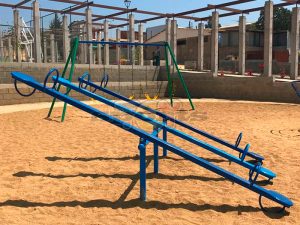 Balancin doble diseñado para espacios públicos, de gran resistencia y durabilidad, fabricado con materiales como fierro laminado de alta calidad, el sistema de anclaje fija el juego a un dado de cemento, posibilitando el correcto uso del mismo.