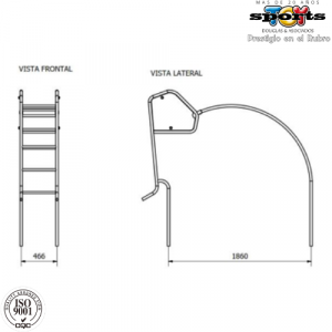 Juego trepador diseñado para espacios públicos, de gran resistencia y durabilidad, fabricado con materiales como fierro laminado de alta calidad, el sistema de anclaje fija el juego a un dado de cemento, posibilitando el correcto uso del mismo.