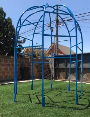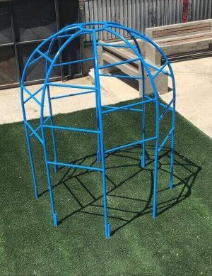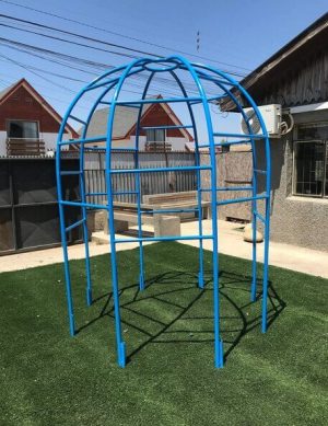 Trepador metálico esta destinado a la recreación infantil, contiene aditivos UV capaces de evitar la decoloración ante los rayos del sol, antiestáticos y no tóxicos, constituido por una plataforma cuya estructura y uniones metálicas son de acero galvanizado, es muy firme y seguro lo que permite que varios niños jueguen de forma simultánea, sellado al horno con pintura electrostática logrando un producto final hecho para durar.
