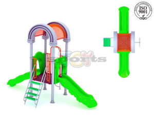 Incluye: 2 toboganes simple, 1 techo curvo, 1 plataforma, 1 escalera de cuatro peldaños, 1 acceso zigzag.
