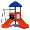 Juego modular de exterior, diseño multifuncional, constituido por una plataforma cuya estructura y uniones metálicas son de acero galvanizado, sellado al horno con pintura electrostática logrando un producto final hecho para durar. Su estructura es muy firme y segura que permite que varios niños jueguen de forma simultanea.