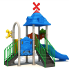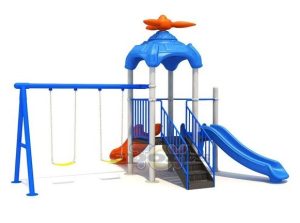 Incluye: 1 plataforma cuadrada, 1 plataforma triangular, 3 tobogán simple, columpio doble, techo, 1 escala, 1 reja de seguridad.