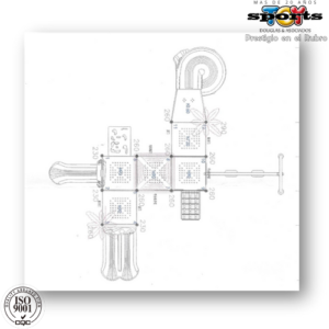Juego Modular de exterior, diseño multifuncional, cuya estructura es muy firme y segura que permite que varios niños jueguen de manera simultanea, constituido por una plataforma cuya estructura y uniones metálicas son de acero galvanizado, sellado al horno con pintura electrostática logrando un producto final hecho para durar.