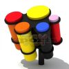 Juego musical de percusión inclusivo, con campanas de aluminio, que emite sonido al golpear las 8 campanas verticales con las baquetas.
